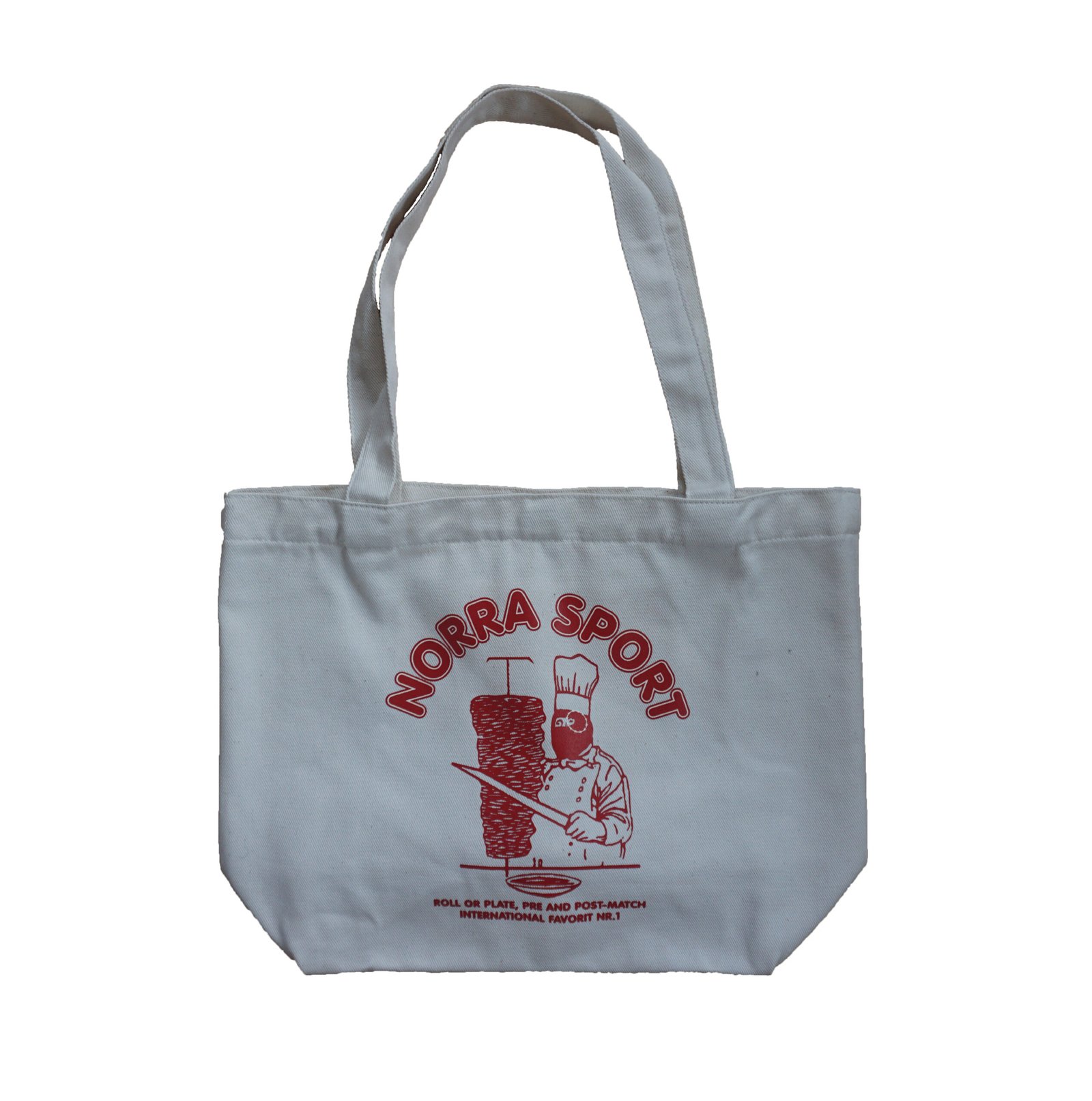 Friday nights with the crew and my fave, catching perfection in every bite. Totebag KEBAB SPORT is crafted from sturdy twill canvas and combined with a screen-printed graphic of the best late-night snack, a kebab, to have after the game. The bag also features a phone-sized inner-pocket and is secured with a magnetic button. Follow the mob, get your kebab!